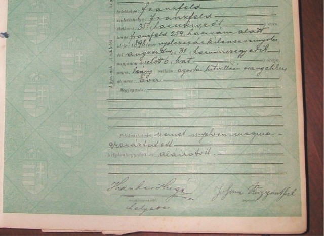 Beim Besuch in Franzfeld (10.9. - 17.9.2004) konnte ich Einblick in das Geburtsregister unserer Großmutter nehmen.