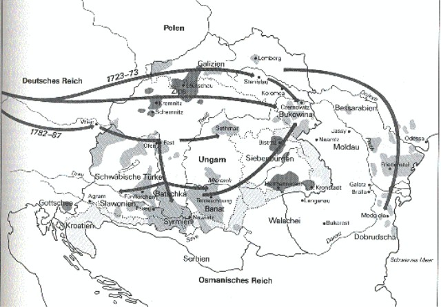 Im großen Stil begann die Besiedlung des Banat mit dem "Ersten Schwabenzug" (1722-1726) unter den Kaisern Josef I. und Karl VI.